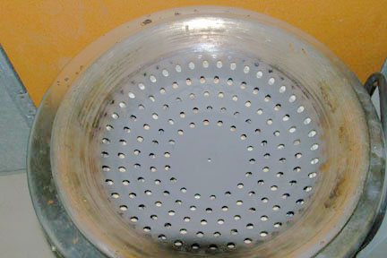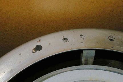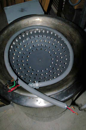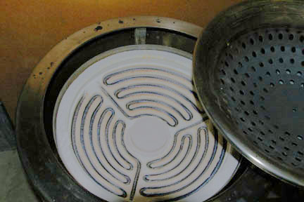 Downward view of the metal kettle holder. The gray looking portion is painted