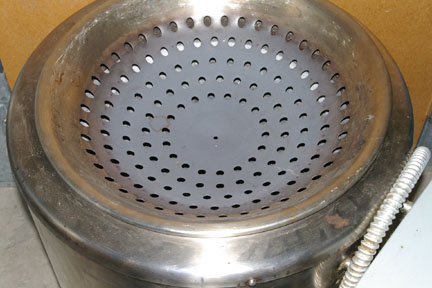 Downward view of the metal kettle holder. The gray looking portion is painted