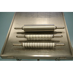 Savage Brothers Roller Cutter. This practically new, circular bladed knife is width-adjustable and comes with 12 blades currently set at 3/4 inch spacing. Blades are ultra sharp stainless steel 4 inch diameter. (Like the frontmost cutter in photo). |